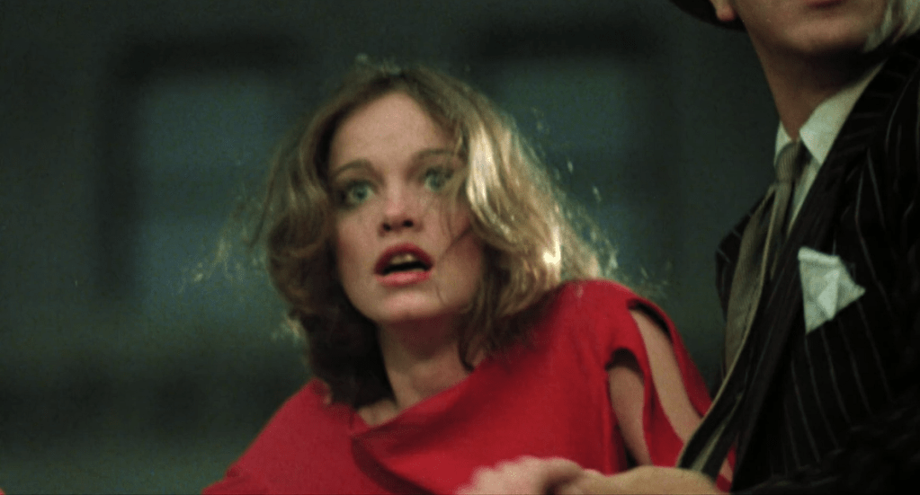 The Lady In Red is a masterclass in efficiency; scenes rampage into the next with nary an establishing shot and tight framing maximises limited sets; hand-me-down clothes, props and vintage cars from other New World gangster pics fill out the background to imply a bigger world than afforded.
