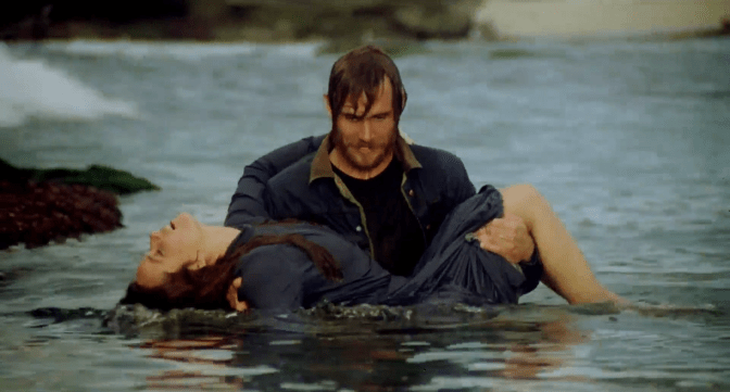 Nothing is what it seems. Lucky doesn’t know who or what is real, with the audience tricked with him in ignoring the joins between Hollywood magic and genuine danger. The hapless hero dives into the sea to rescue an old woman who, to his horror, peels off her makeup to reveal ingenue starlet Nina (Barbara Hershey). She then demands he continues the chivalry and carry her ashore, enjoying the fantasy.