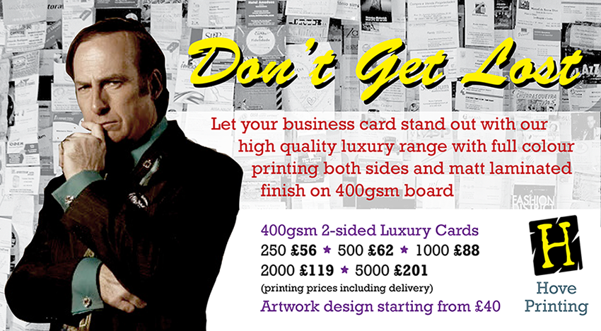 - Design – if you want to use our studio services to design for you. Really it’s about delivering what you want, so can start from £30 for a simple card.